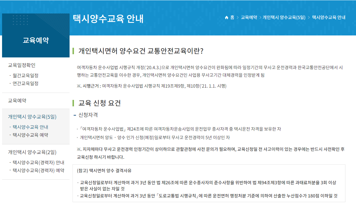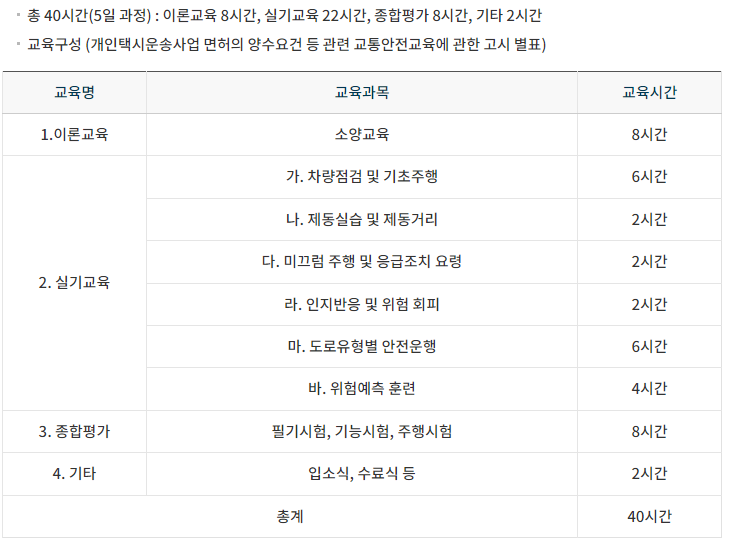 개인택시 면허 양수요건 교통안전교육 수료 요건