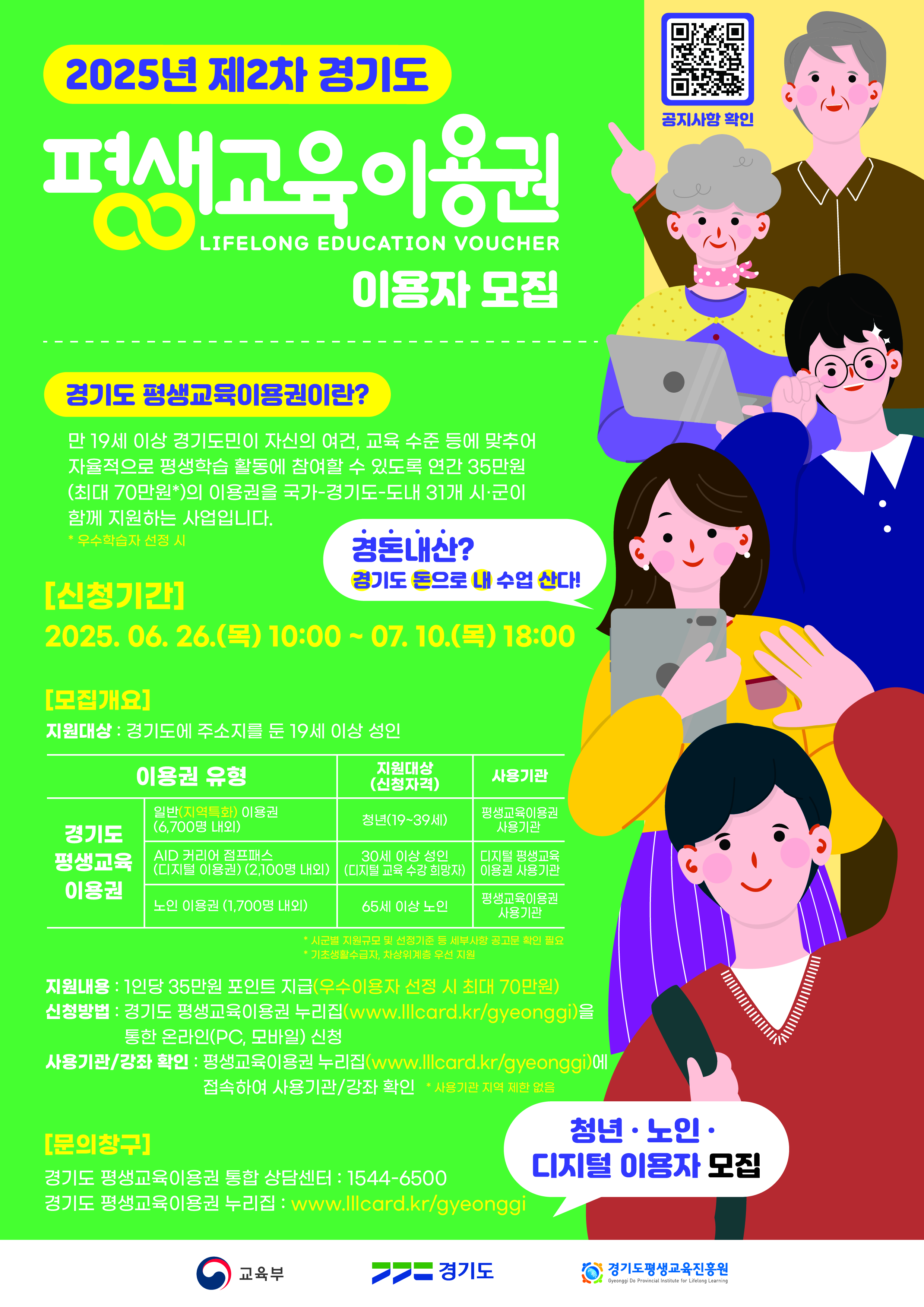 경기도는 경제적 여건으로 학습 기회를 놓친 도민들을 위해 평생교육이용권을 지원합니다.