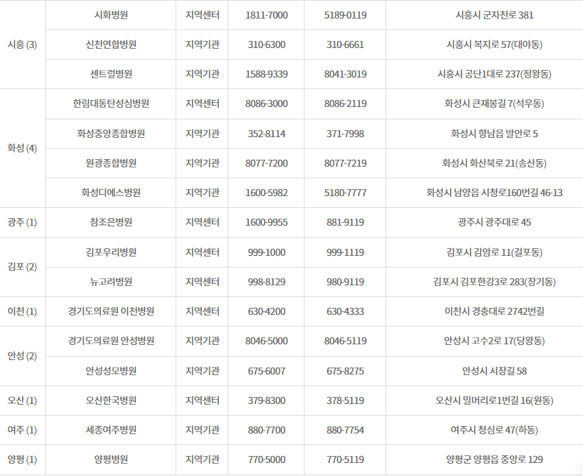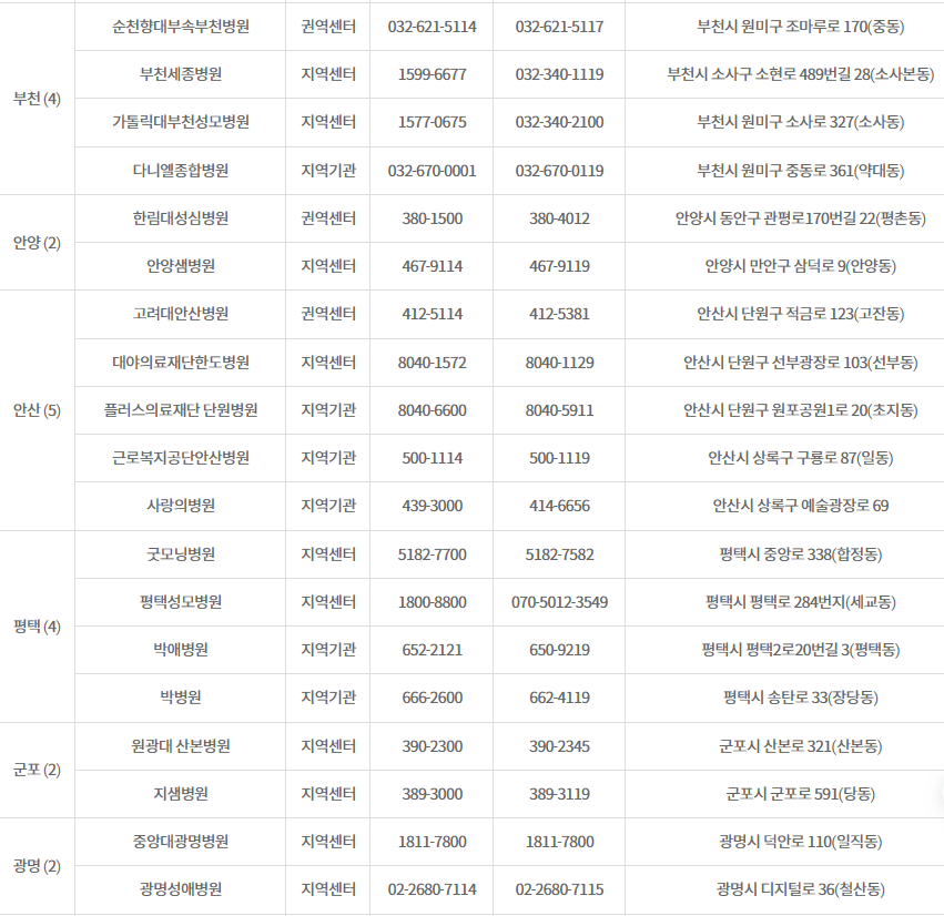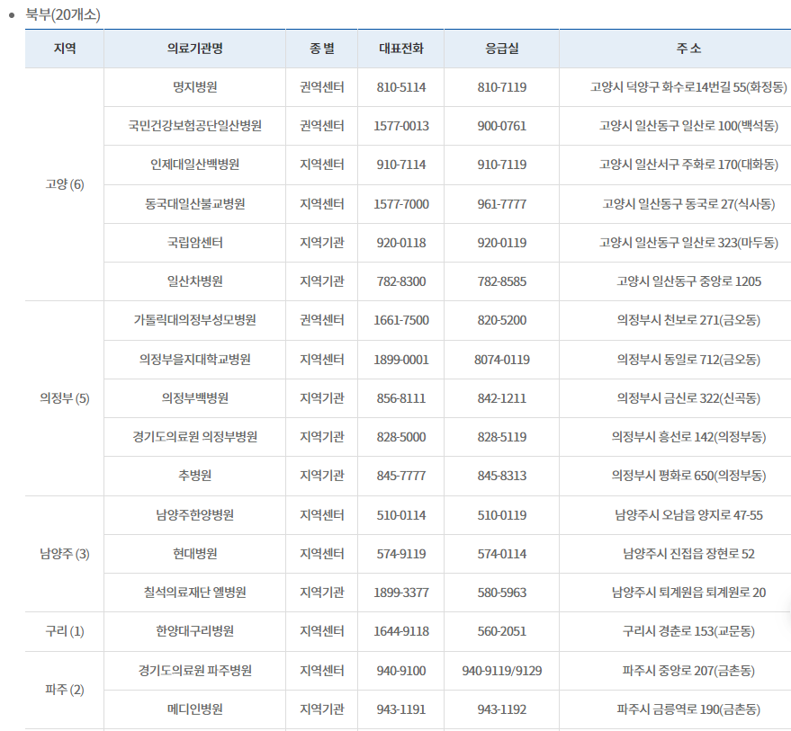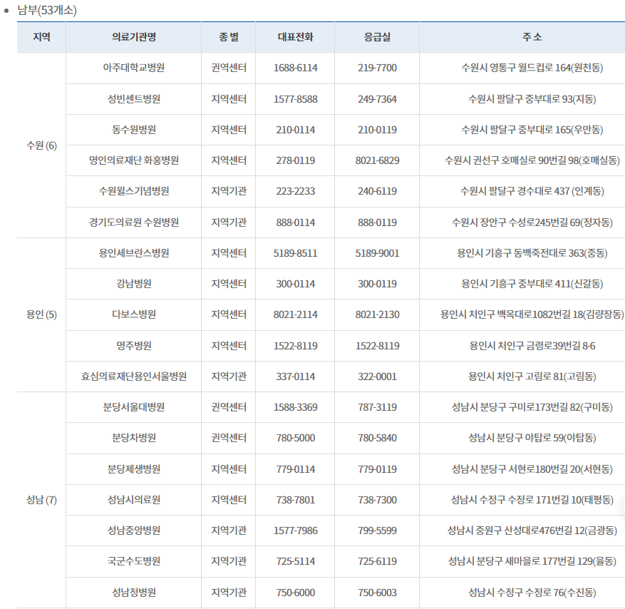 비상진료의료기관 경기도청 담당부서 보건의료과 ☎031-8008-4375