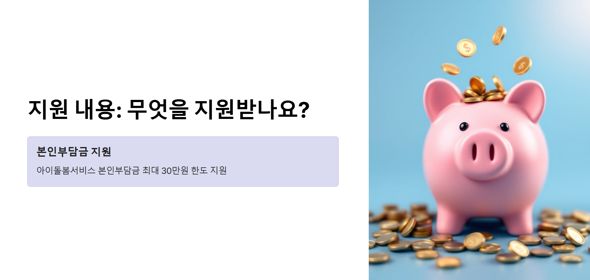 - 시간제 돌봄서비스: 필요에 따라 시간 단위로 아이돌봄 서비스를 이용할 수 있습니다.