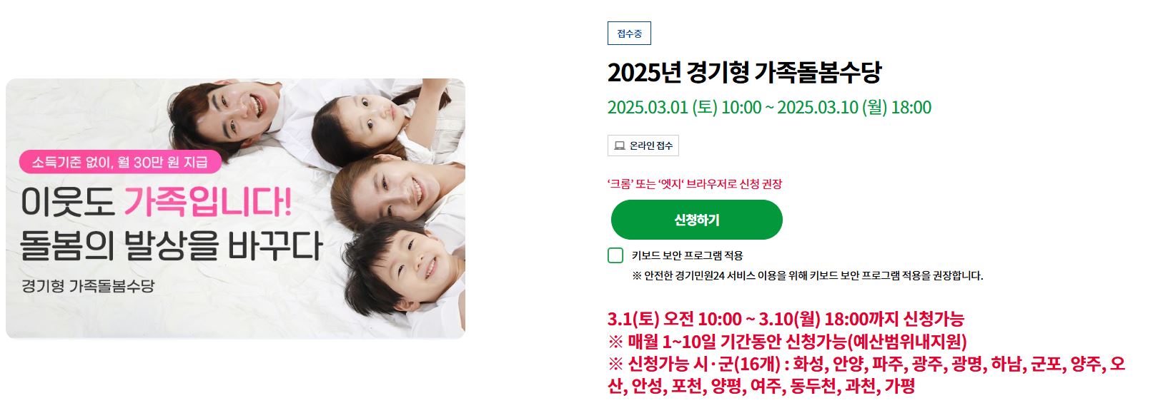 2025년 경기형 가족돌봄수당에 대해 알아보겠습니다.