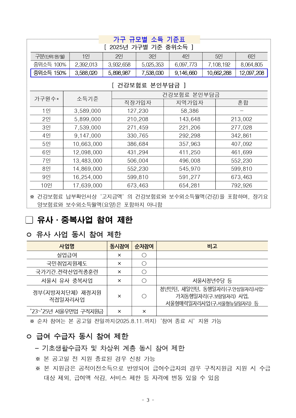| 소득 기준 | 가구 기준 중위소득 150% 이하 |