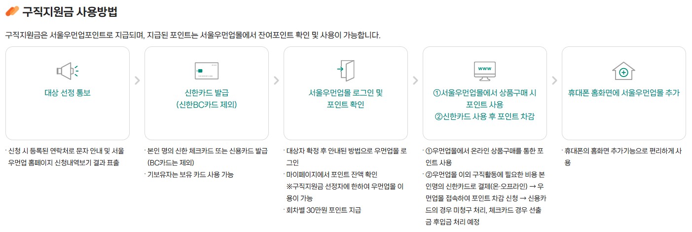 - 온라인·오프라인 구직활동 비용으로 사용 가능