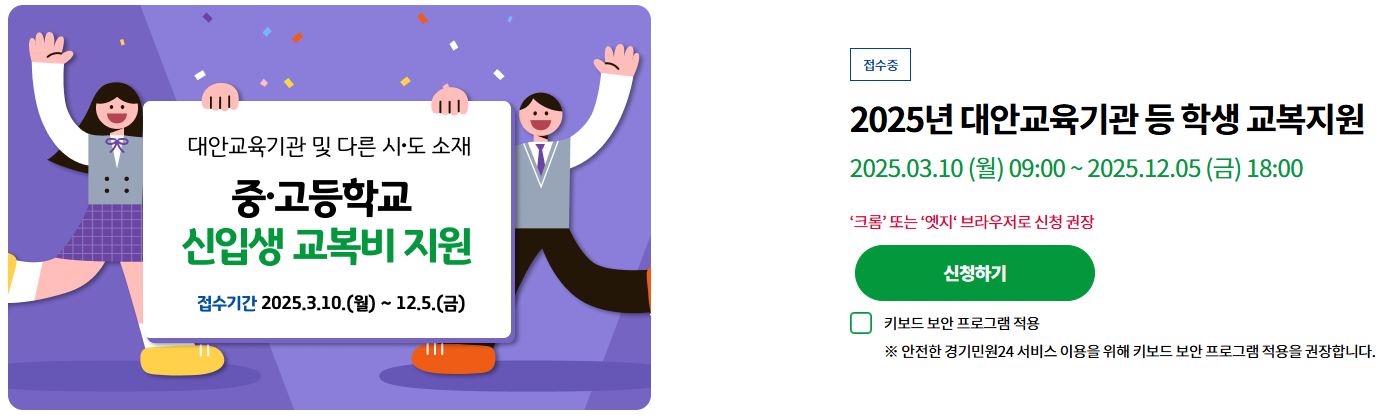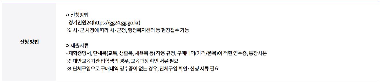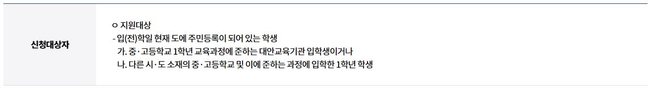 - 지원대상자가 입(전)학일 기준으로 경기도민이라면 지원이 가능하다.
