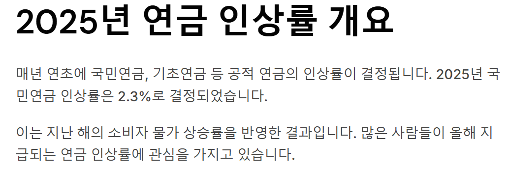 - 관심 사항: 많은 사람들이 올해 지급되는 연금 인상률에 대해 관심을 가지고 있다.