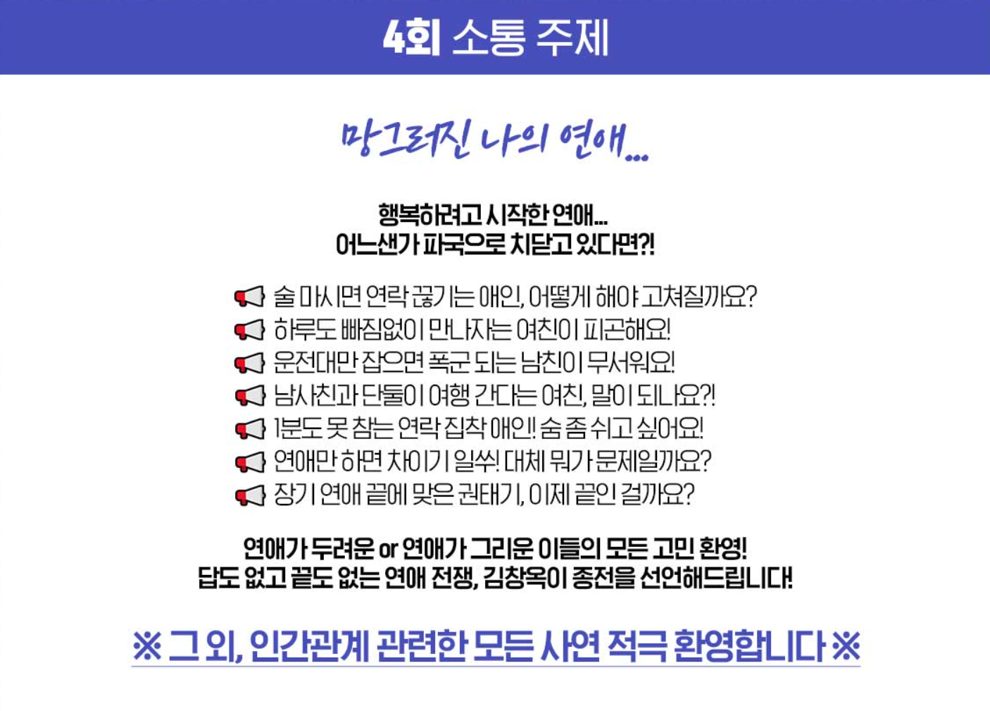 ※ 그 외, 인간관계 관련한 모든 사연 적극 환영합니다. ※