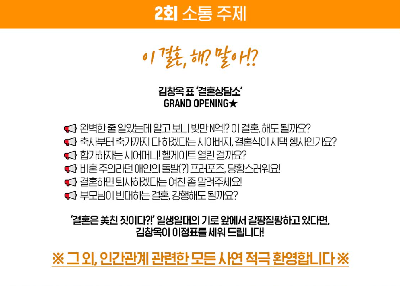 김창옥표 '결혼상담소' GRAND OPENING