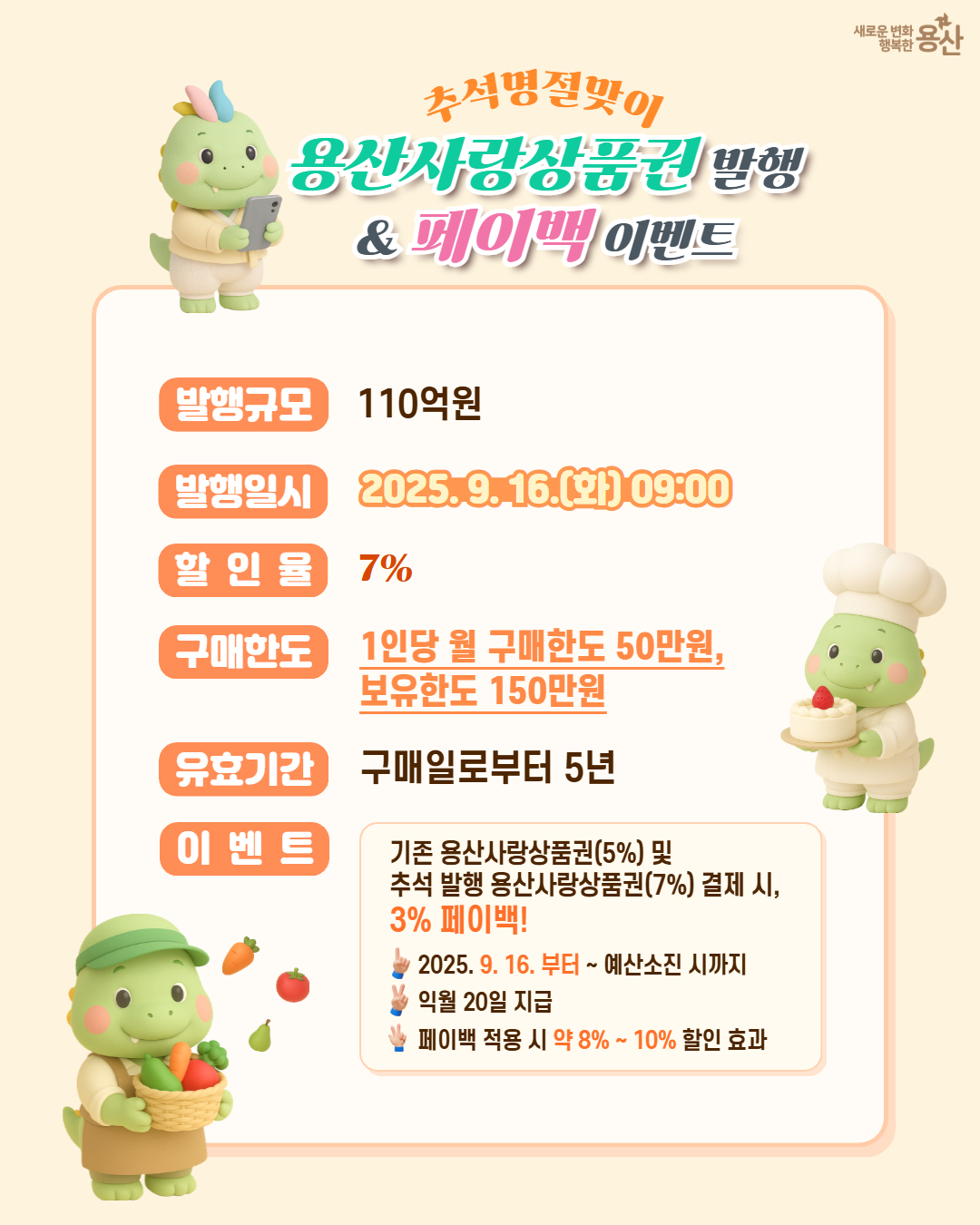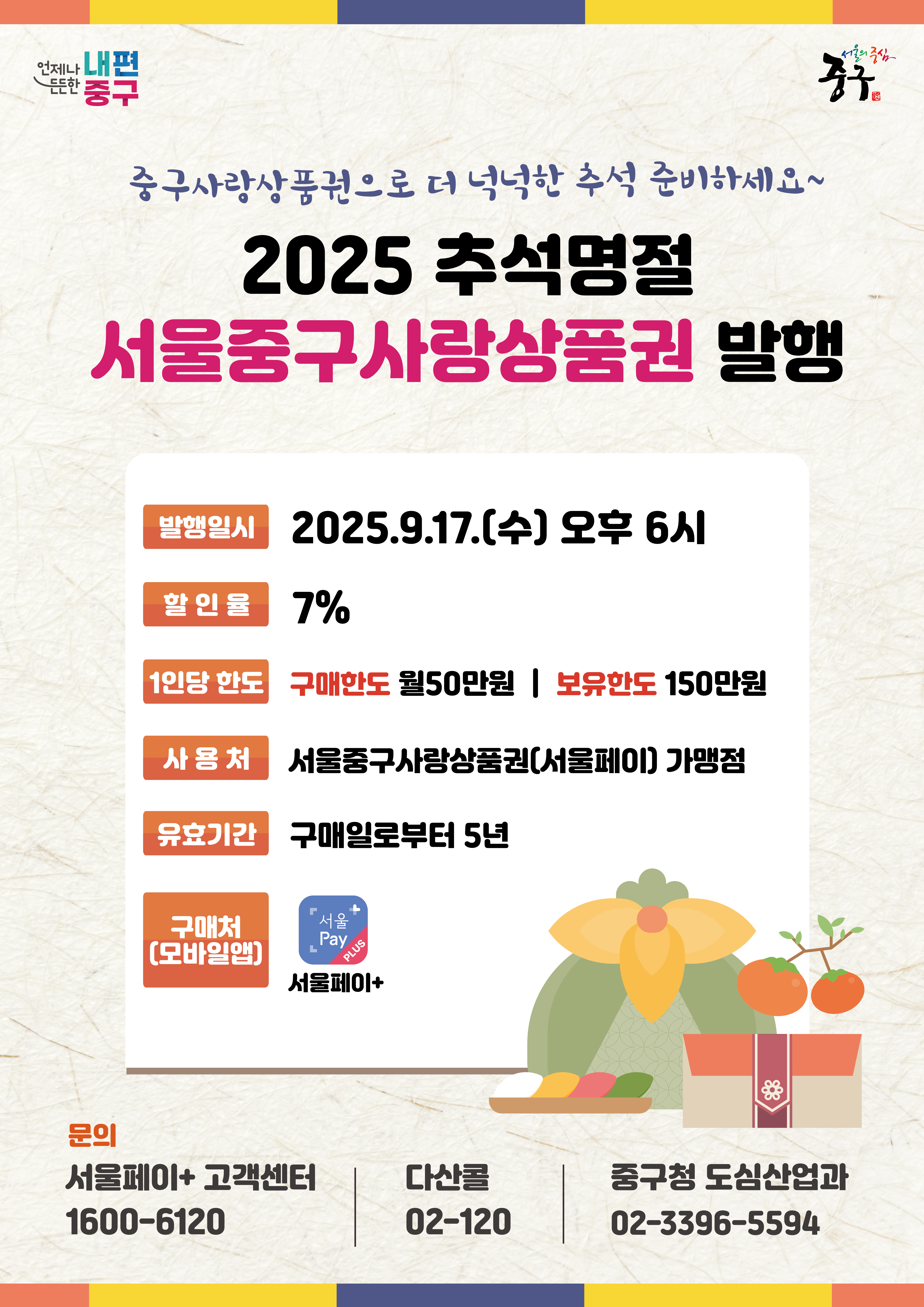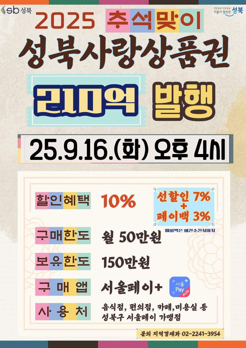 이번 추석(2025년)에는 9월 16일부터 18일까지 3일간, 기존보다 확대된 7% 할인으로 제공되며, 일부 자치구에서는 페이백 최대 5%까지 받을 수 있어 총 12% 절약도 가능합니다.