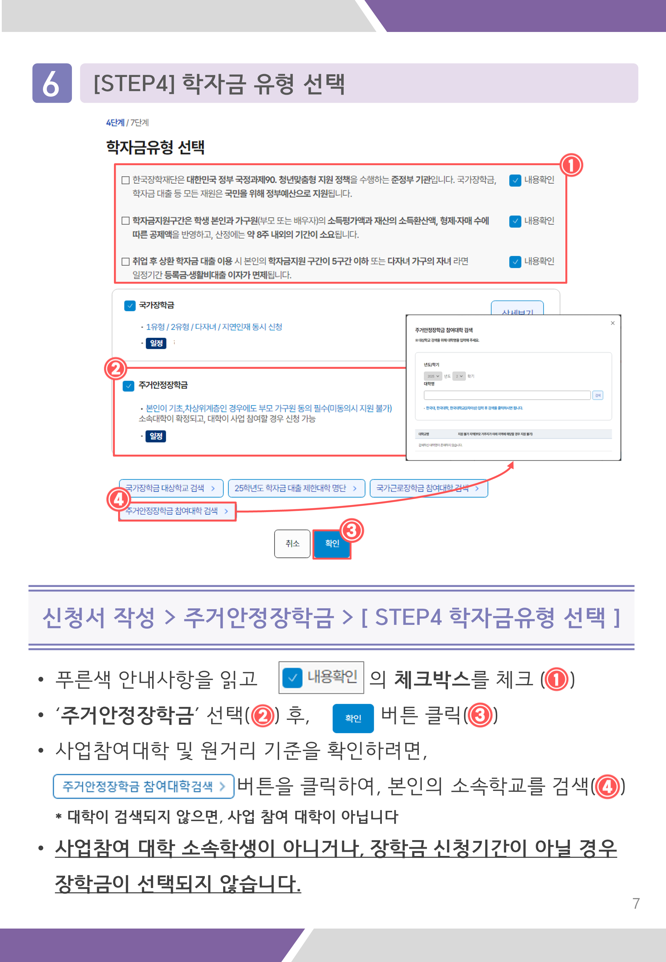 - 대학이 주거안정장학금 참여 대학이 아닌 경우