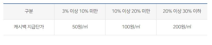 도시가스 절약 캐시백 지급기준