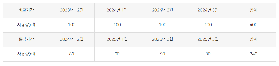 - 기타 사유로 절감기간 및 비교기간의 사용량 조회가 불가능한 경우
