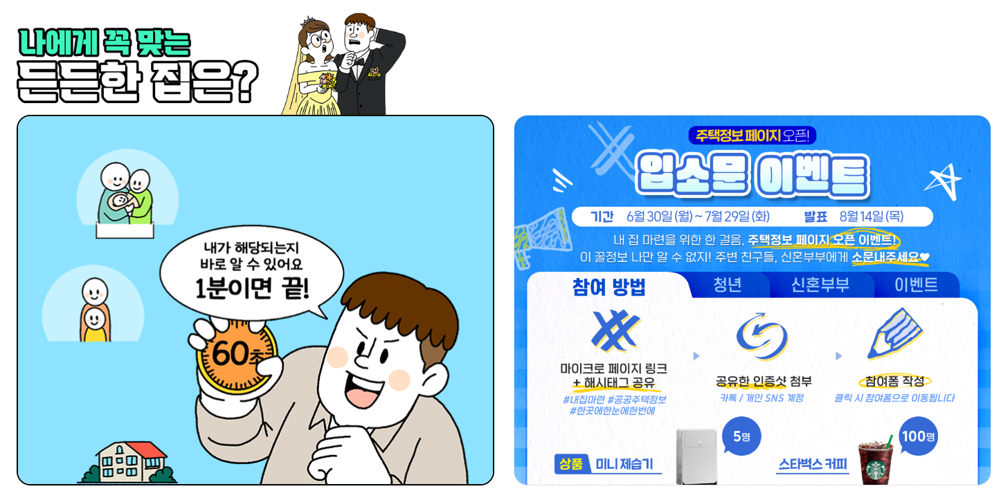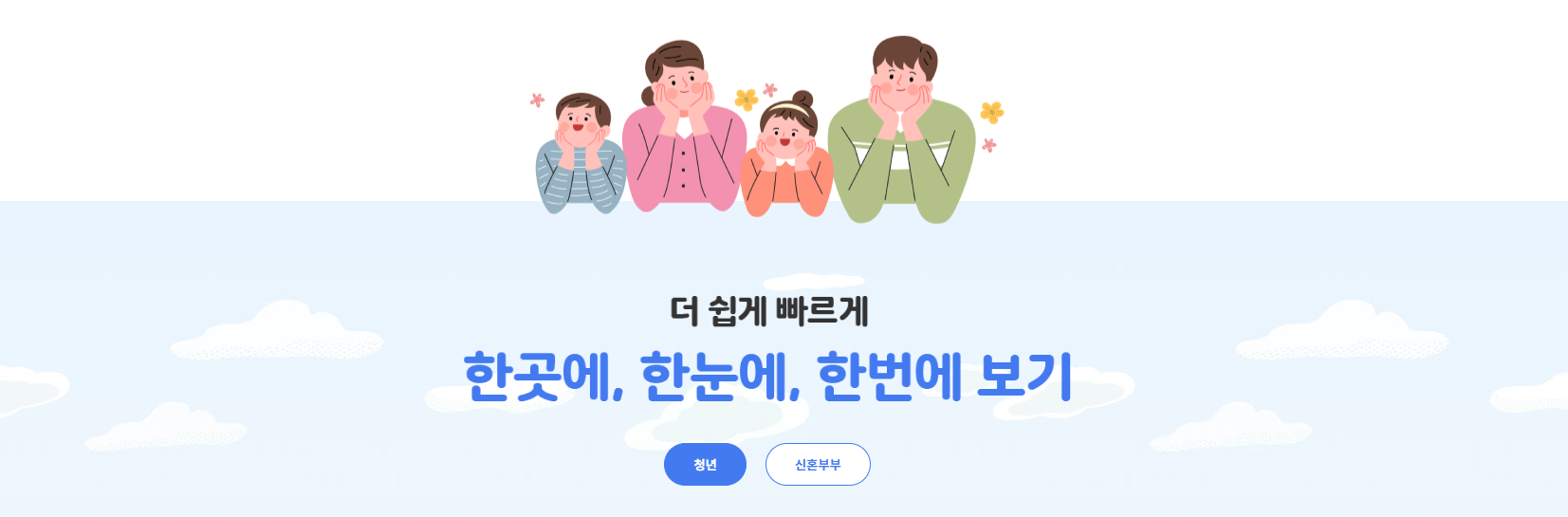 청년, 신혼부부, 다자녀 가구는 물론 일반 무주택자까지 대상별 맞춤형 정보 제공으로 누구나 이용 가능합니다.