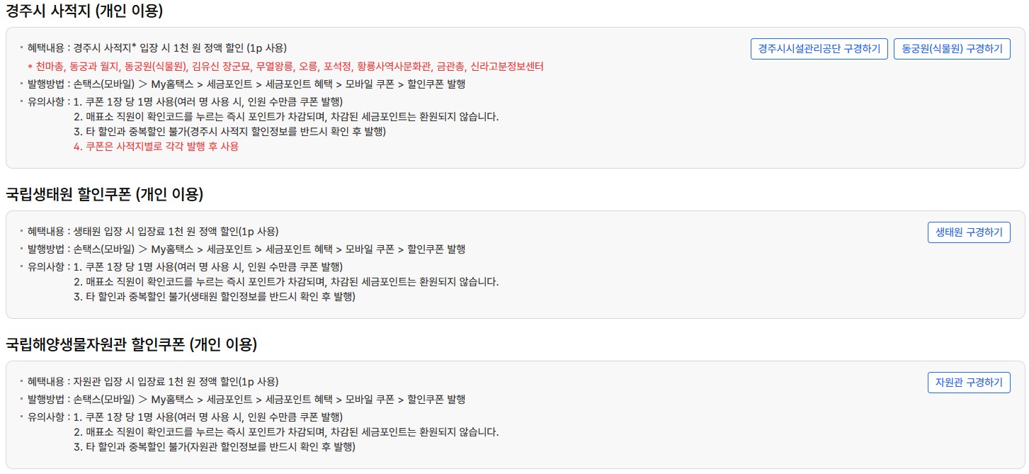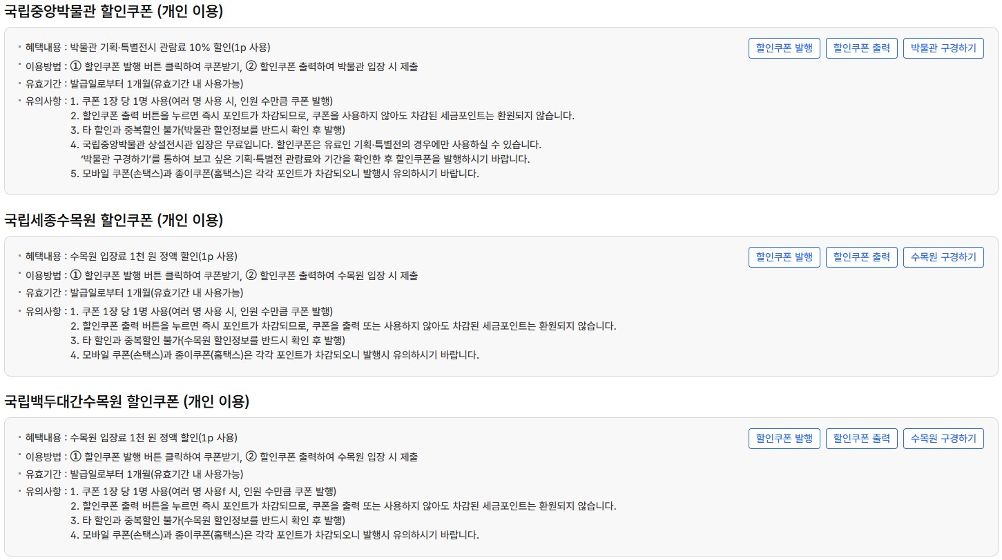 또한 CGV 영화 관람 할인, 유명 관광지 입장 할인, 전시관 이용료 할인에도 사용이 가능해요.