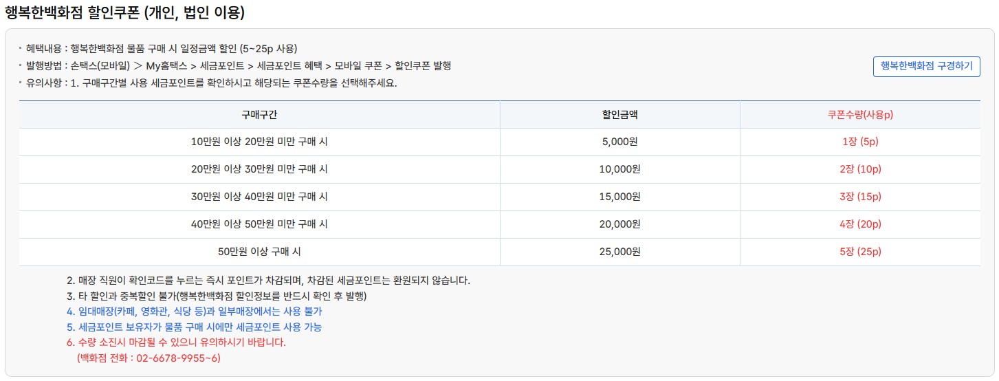 쌓인 포인트는 ‘세금포인트 할인 쇼핑몰’에서 중소기업 제품 구매 시 5% 할인 혜택으로 사용 가능합니다.