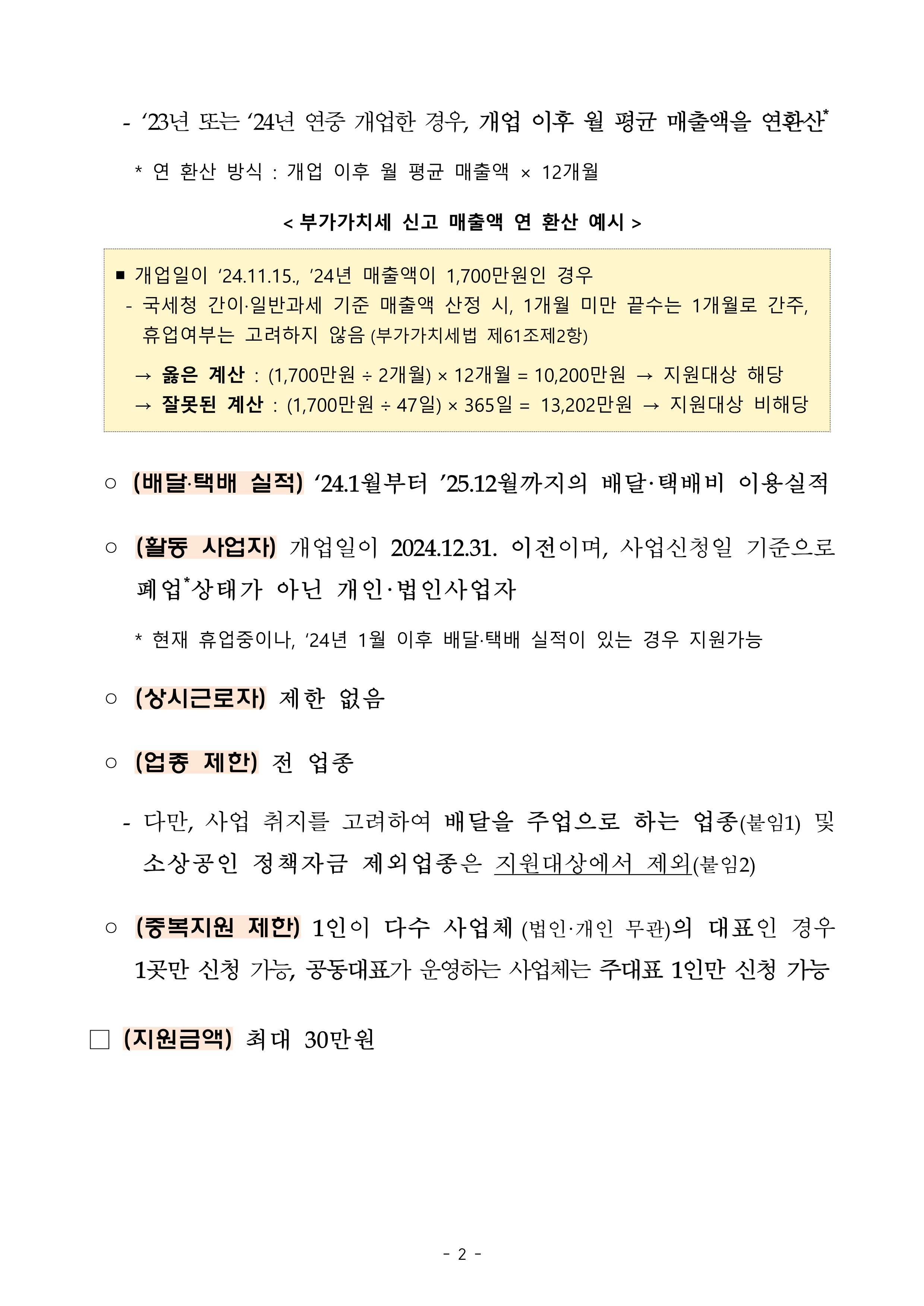- A: 연 매출이 1억 4백만원 미만이어야 하며, 사업자 등록이 되어 있어야 합니다.