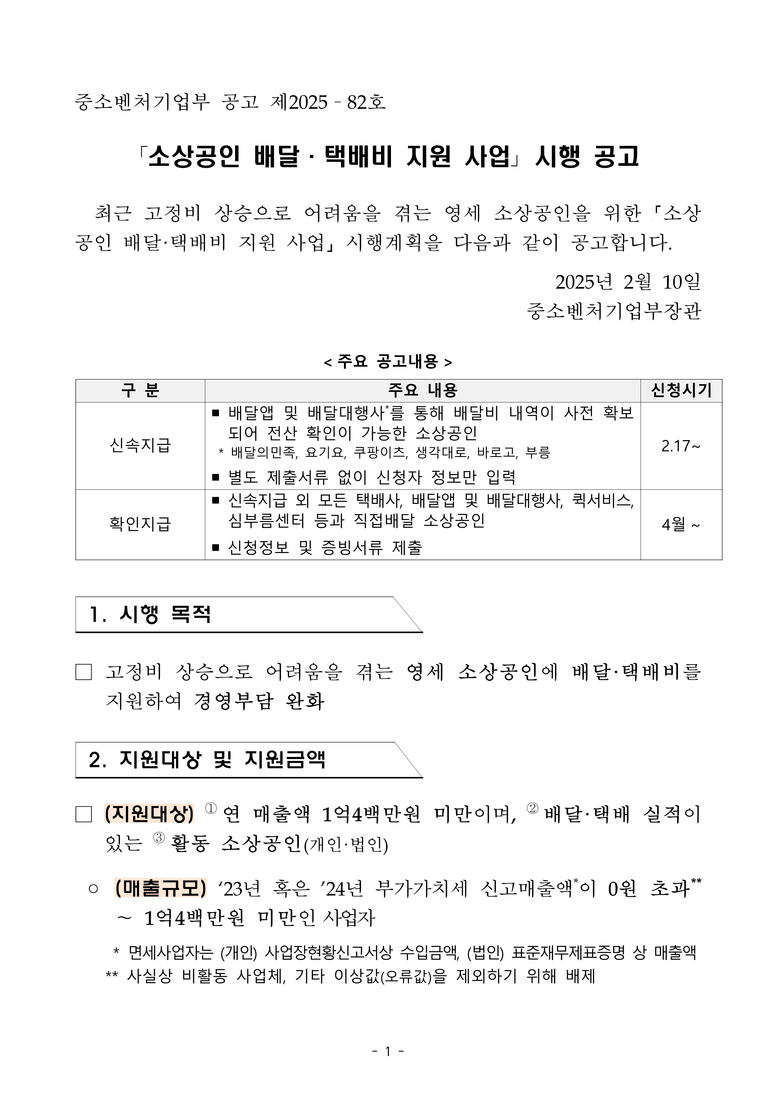 1. 소상공인 배달·택배비 지원 사업 개요
