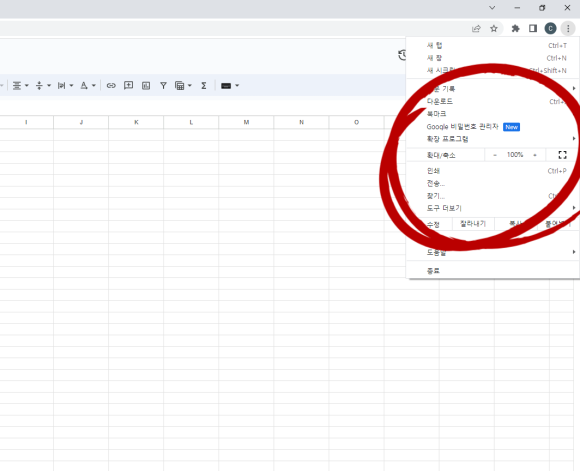 크롬에서 작업하는 구글 스프레드 시트에는