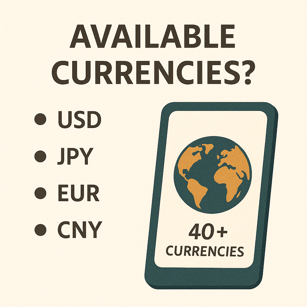 미국(USD), 일본(JPY), 유럽(EUR), 중국(CNY), 태국(THB), 베트남(VND) 등 주요 40여 개 통화 지원!