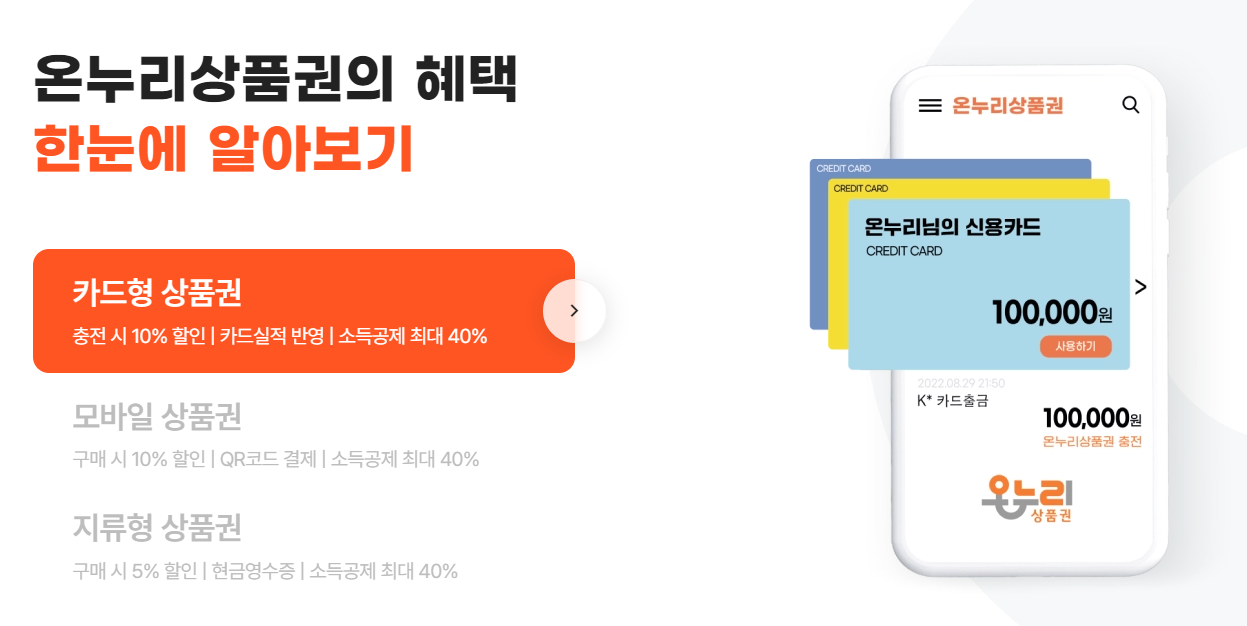 카드형 온누리 상품권은 일반 신용카드와 유사하게 생긴 카드로, 충전을 통해 사용할 수 있는 선불 카드입니다. 사용자는 온누리 상품권을 충전한 후, 카드 단말기가 설치된 판매처에서 간편하게 결제할 수 있습니다. 카드형 상품권은 충전이 용이하고, 잔액 확인도 쉽게 할 수 있어 많은 소비자들에게 사랑받고 있습니다.