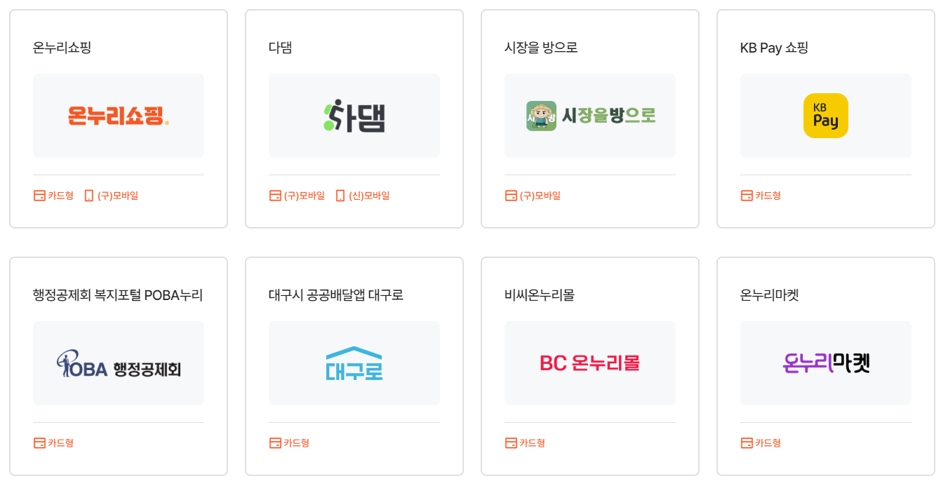 가맹점, 온라인 사용처, 다운로드 바로가기
