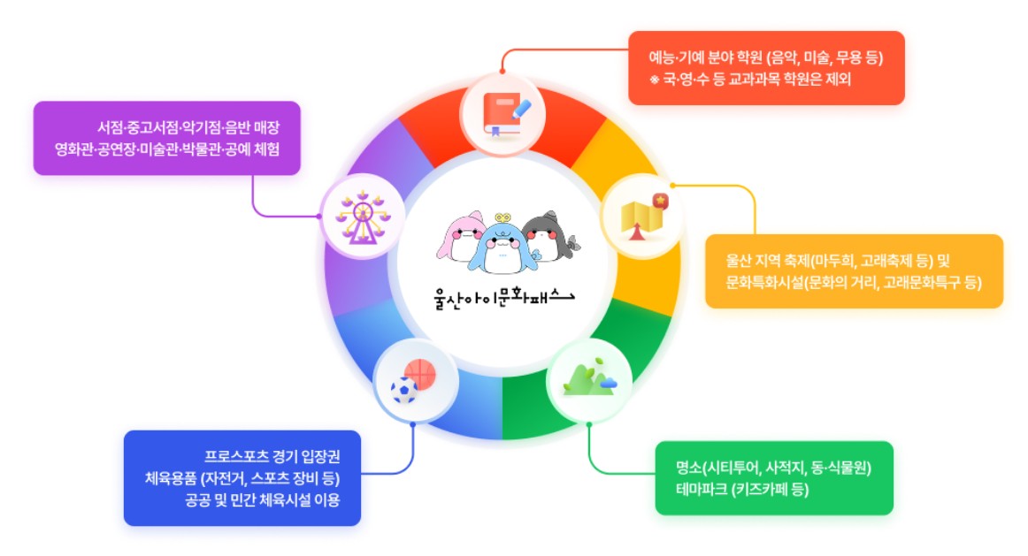 울산아이문화패스 홈페이지에 명시된 사용처를 확인할 수 있으며, 문화·예술·체육 관련 기관 대부분에서 사용 가능합니다.