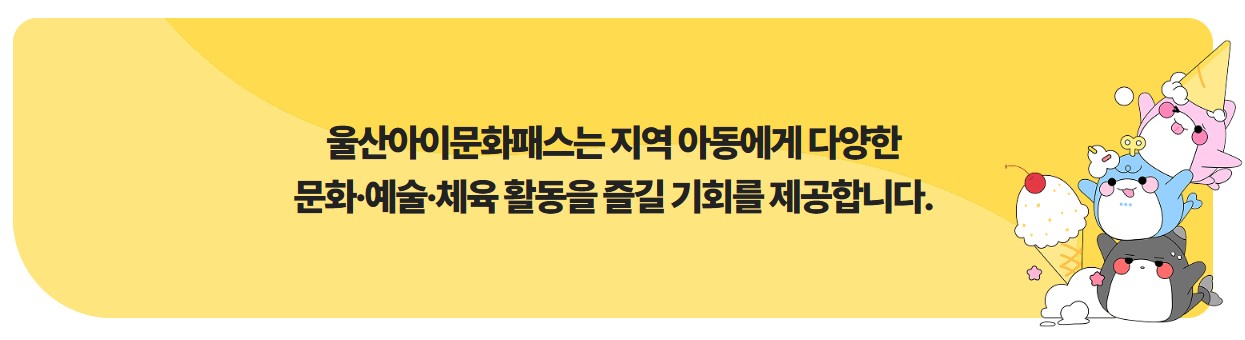 울산광역시에서 제공하는 ‘아이문화패스’는 지역 내 초등학생(7~12세)을 대상으로 한 문화·예술·체육 활동 지원 프로그램입니다.