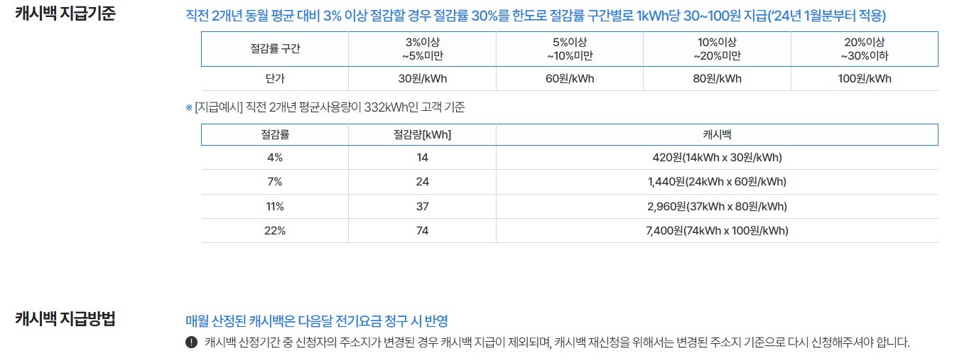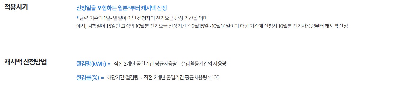 신청한 날이 포함된 전기요금 산정 기간부터 캐시백이 적용돼요.