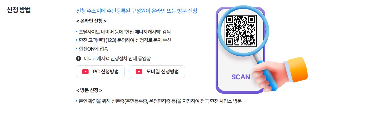 - 한전 고객센터(국번 없이 123)에 전화해 신청 안내 문자 받기