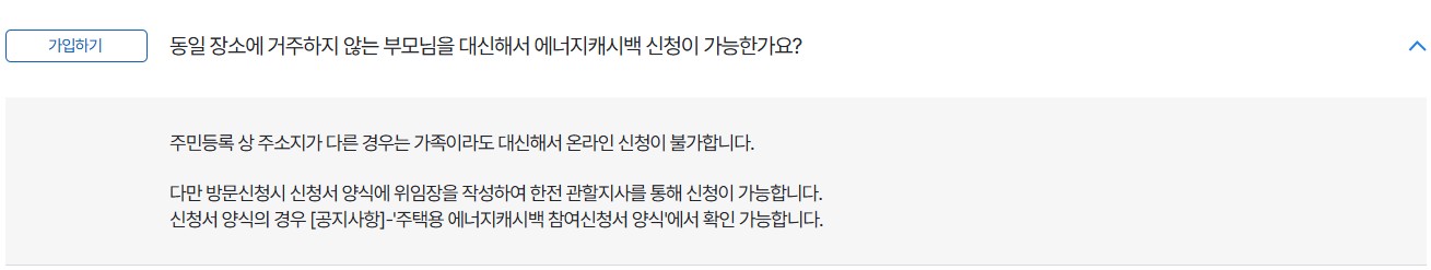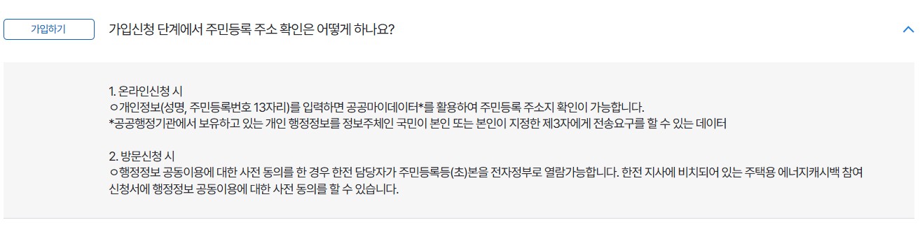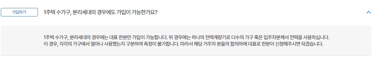 | 가정용 전기 사용자 | 개인 또는 가족 단위로 신청 가능 |