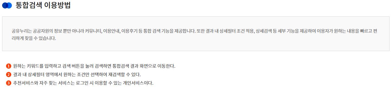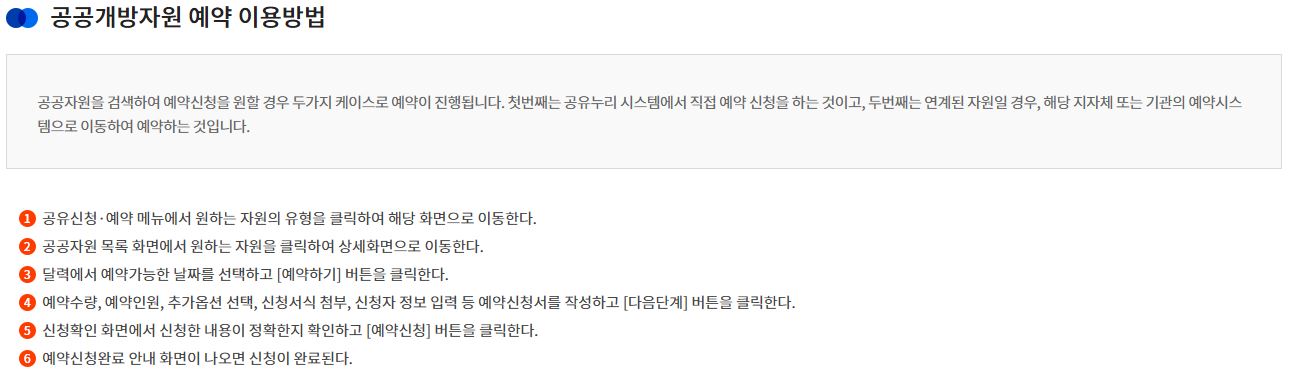 - 자원 검색 : 사용자는 원하는 자원을 쉽게 검색할 수 있습니다. 지역, 종류, 이용 가능 시간 등을 기준으로 필터링하여 필요한 자원을 찾을 수 있습니다.