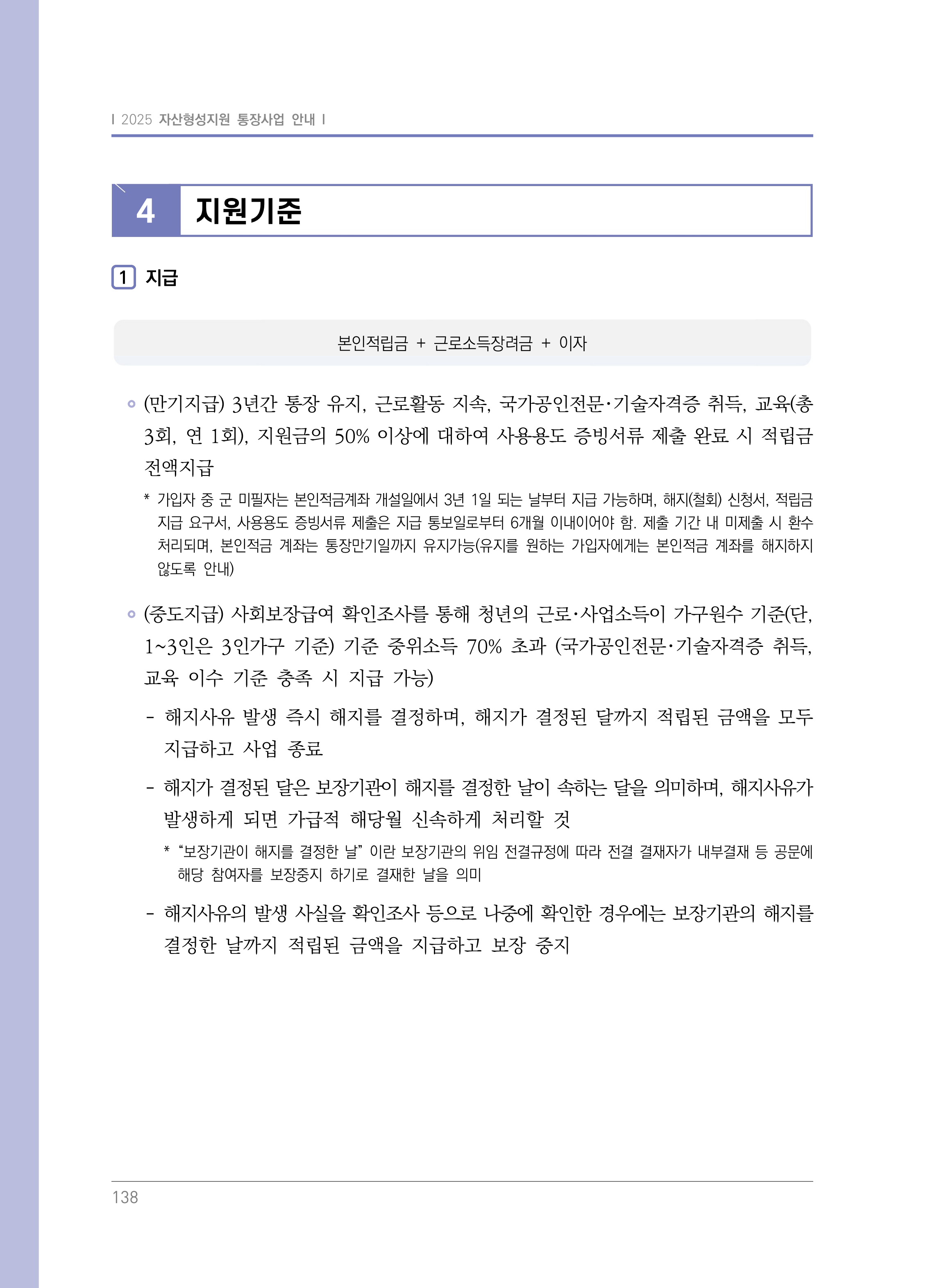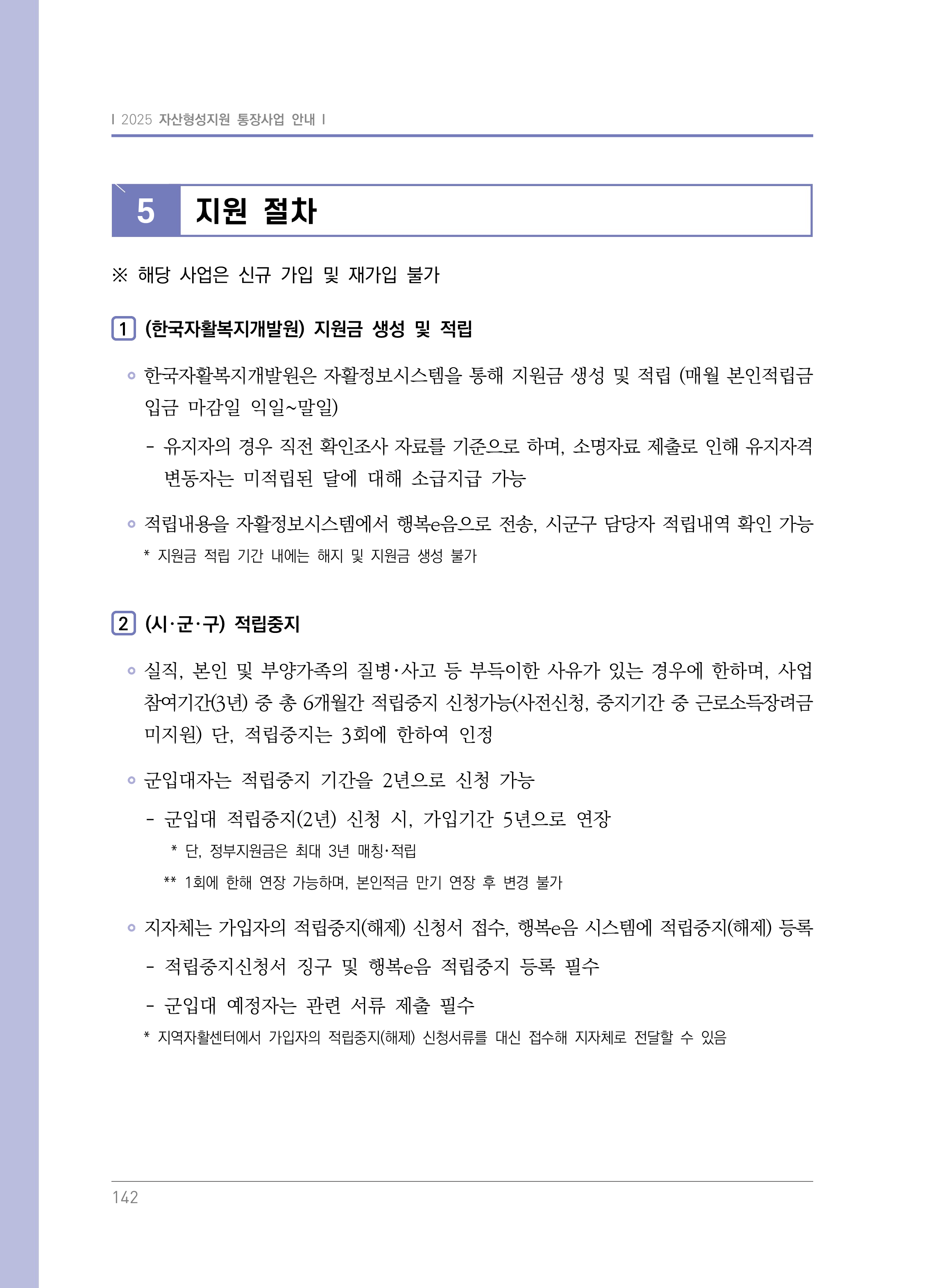 | 제외 대상 | 유사 자산형성지원사업 참여자 등 | 신청 불가 |