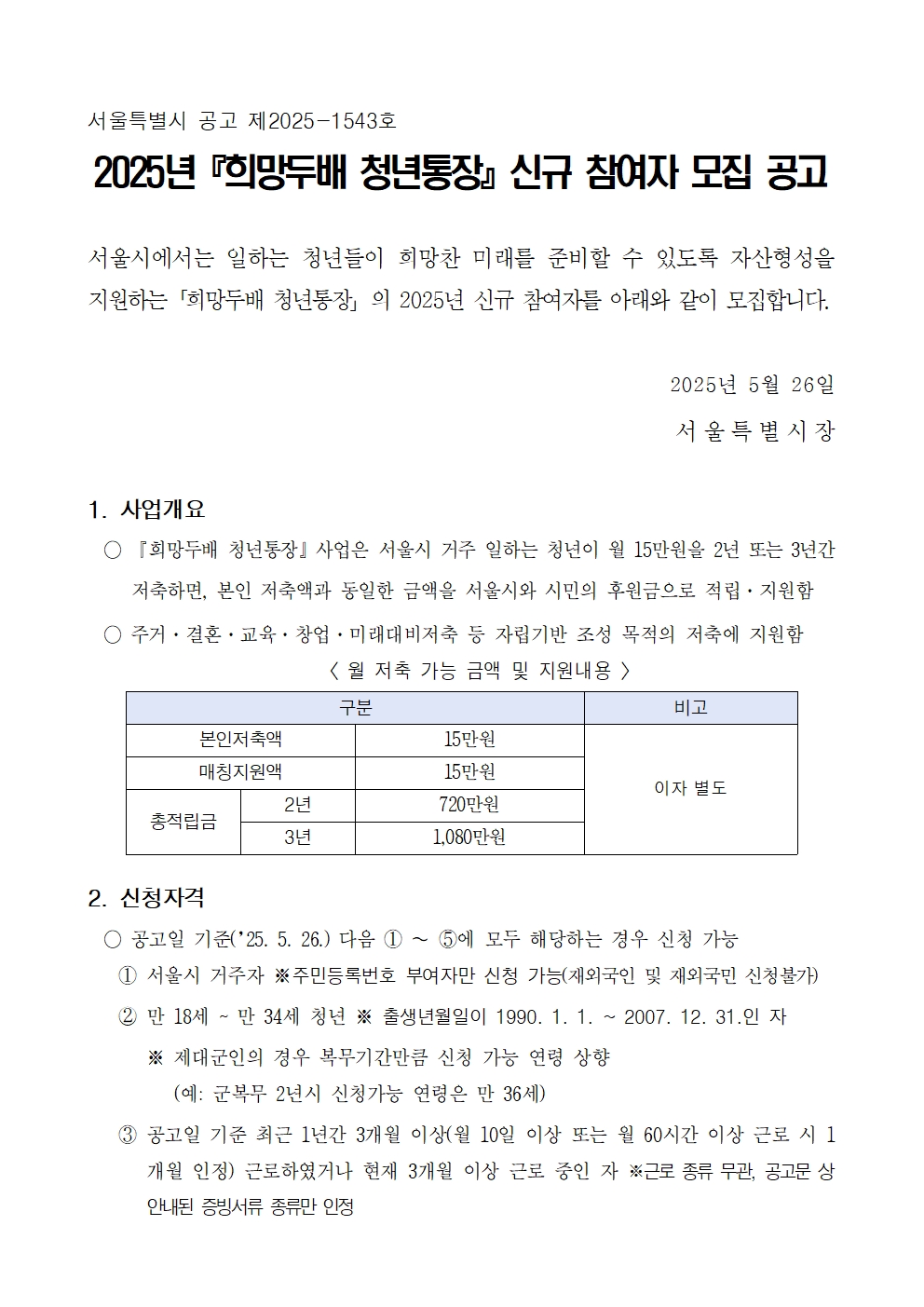 2025년 '희망두배 청년통장' 무엇이 달라졌나?