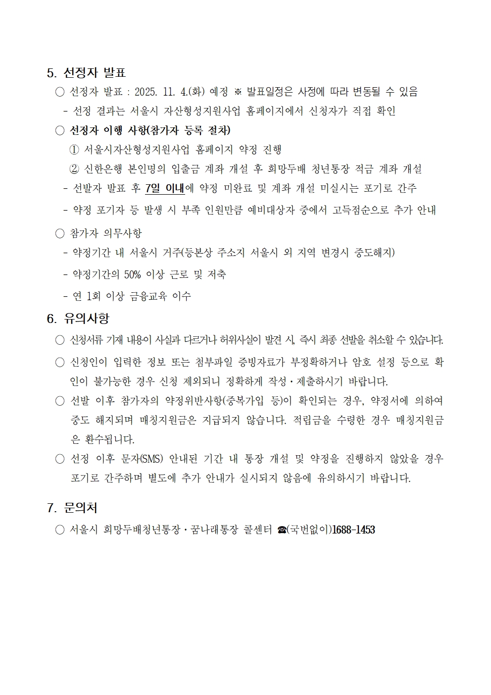 서울시 자산형성지원사업 콜센터 ☎1688-1453로 문의하시면 됩니다.