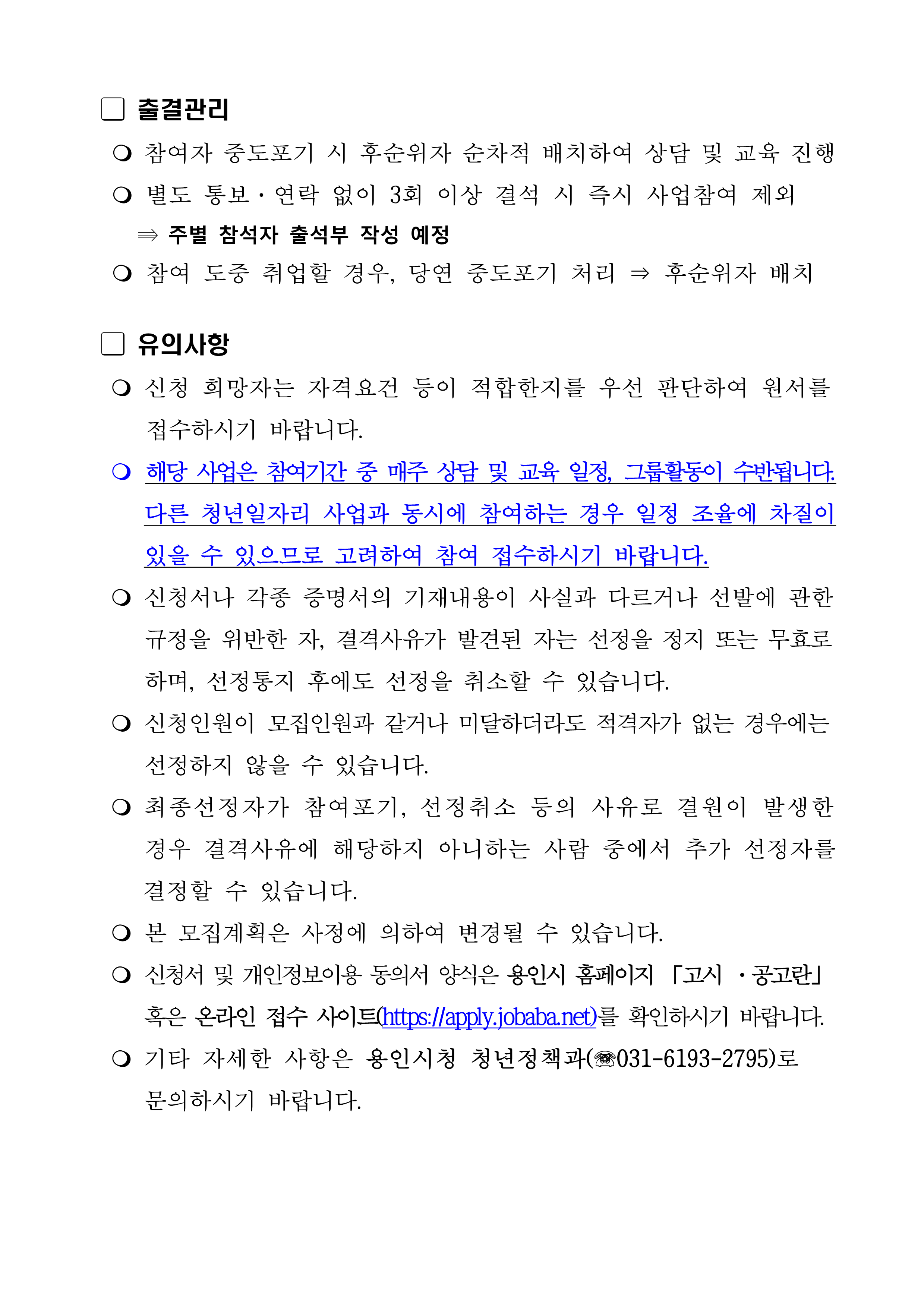 - 반드시 용인시 거주자이면서 미취업 상태여야 함