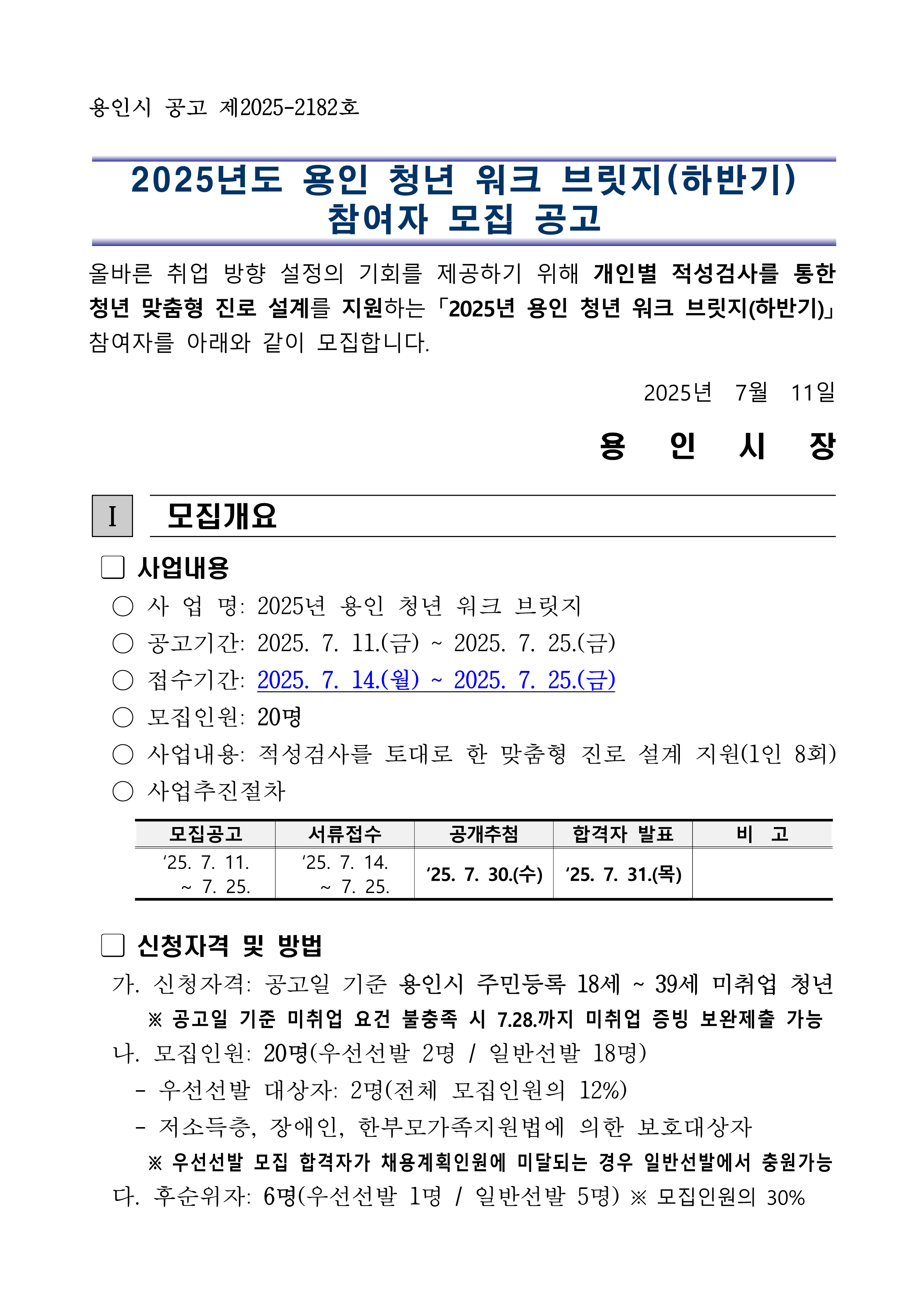 | 공고기간 | 2025.07.11 ~ 07.25 |