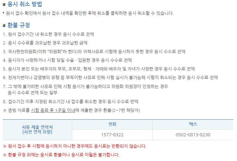 | 시험 종류 | 응시 수수료 | 환불 규정 |