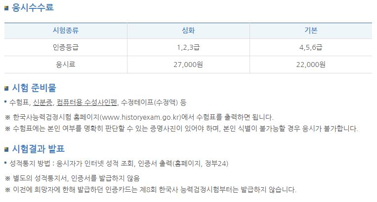 Q1. 한국사능력검정시험의 응시 수수료는 얼마인가요?