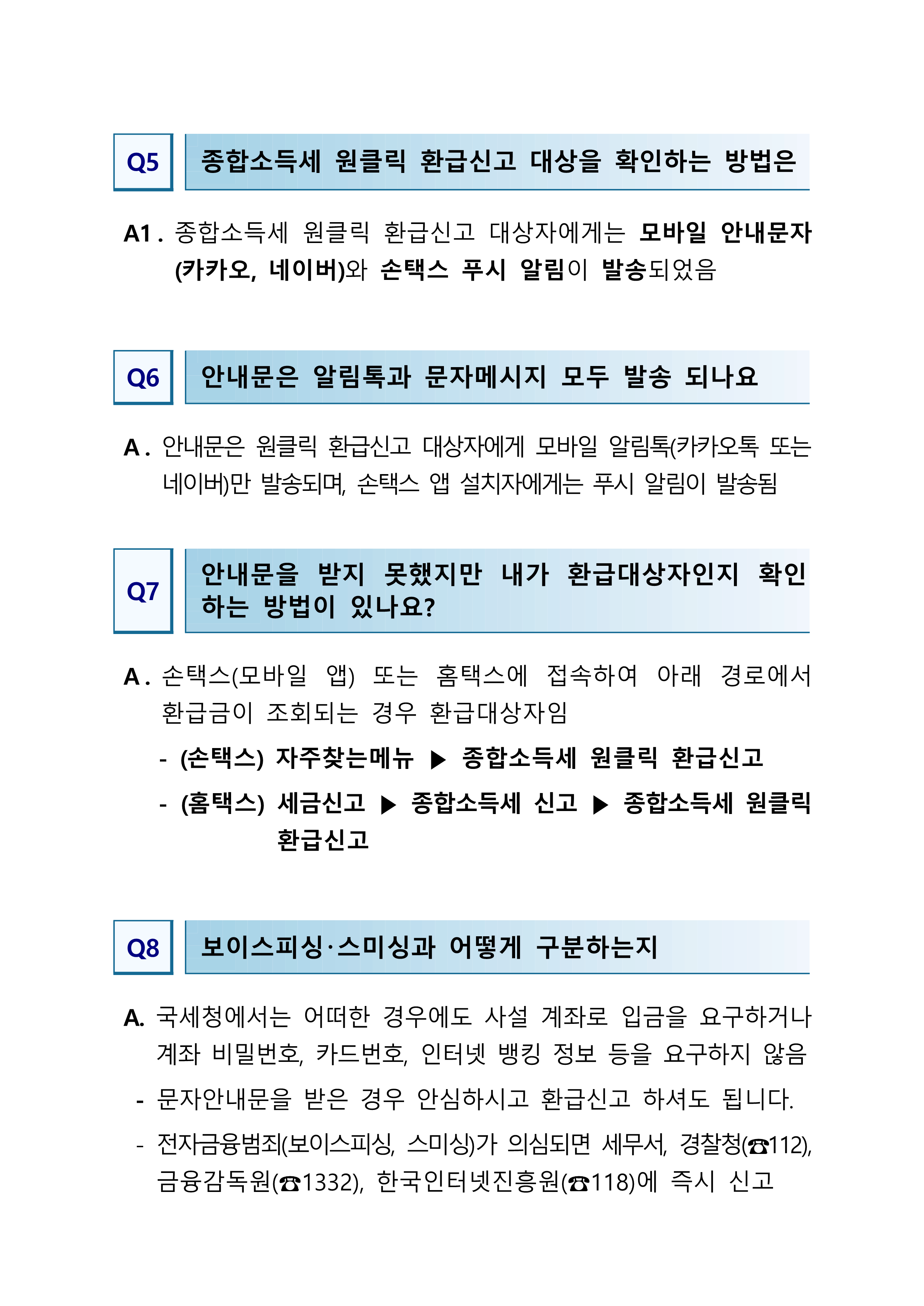 이처럼 국세청의 원클릭 환급신고 서비스는 납세자에게 많은 편리함을 제공하고 있습니다. 복잡한 세금 환급 절차를 간소화하여, 더 많은 사람들이 쉽게 환급을 받을 수 있도록 돕는 이 서비스에 많은 관심과 이용을 부탁드립니다.