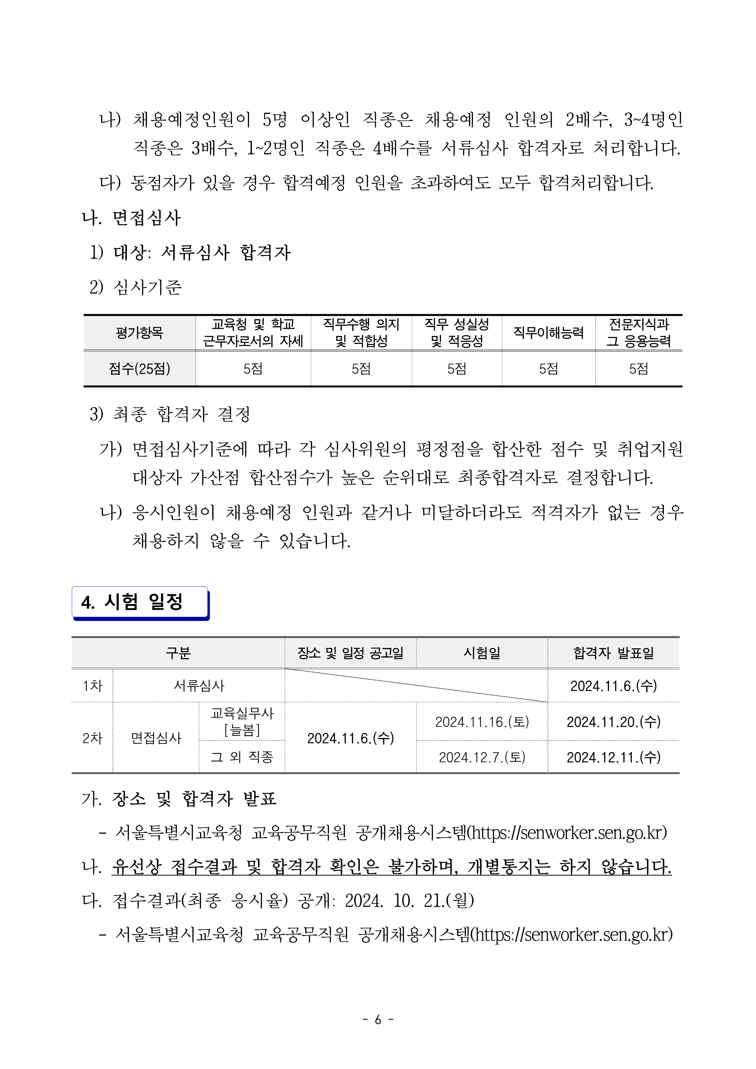 나) 응시인원이 채용예정 인원과 같거나 미달하더라도 적격자가 없는 경우 채용하지 않을 수 있습니다.