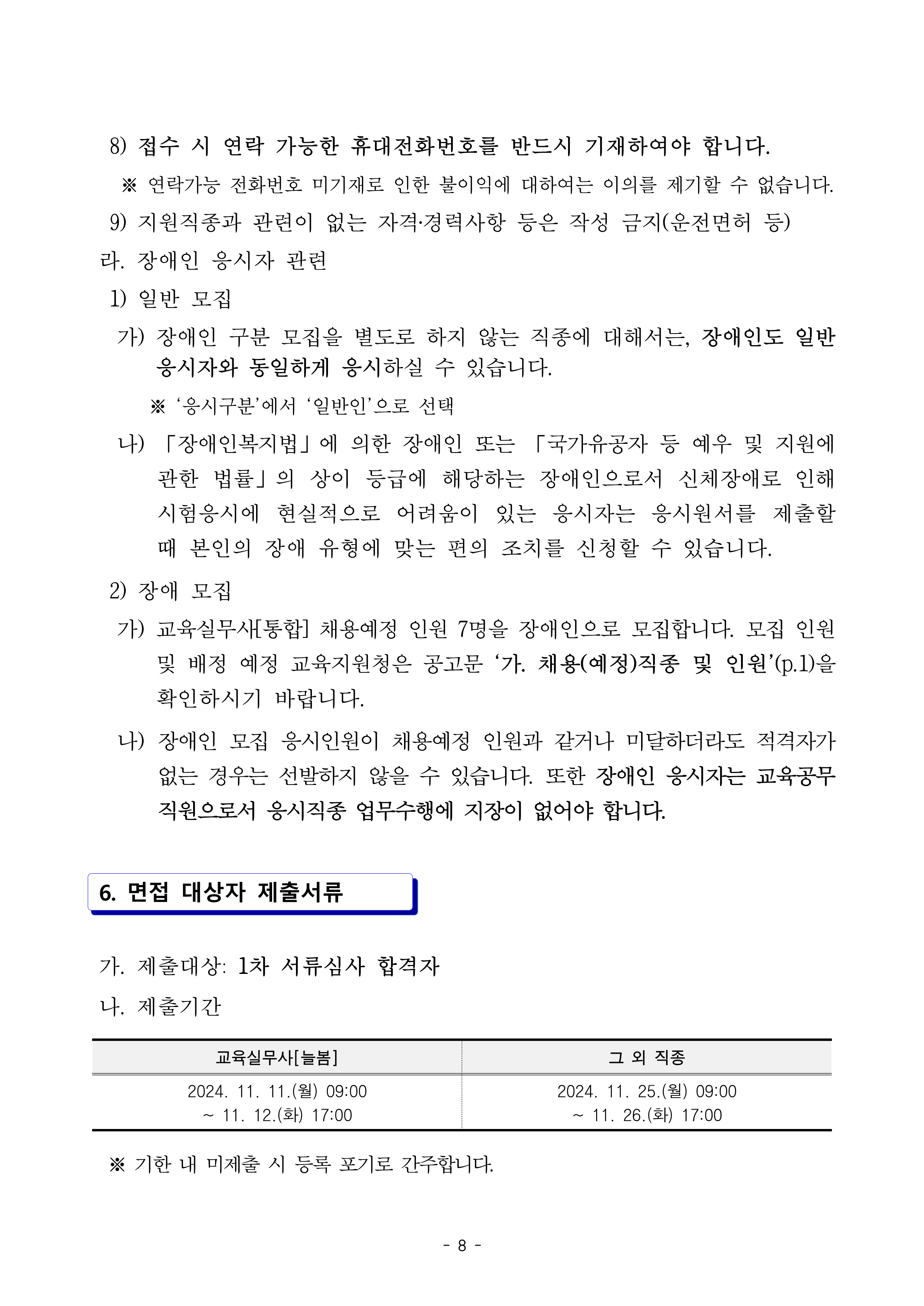 단, 교육지원청 배정은 최종합격자 발표 후 근무희망 교육지원청, 주소 등을 반영하여 배정 예정이며, 근무희망하지 아니한 교육지원청에 배정될 수 있습니다.