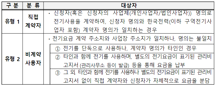 사업장용 전기요금(주거용 등 제외)을 부담하는 개인, 법인사업자