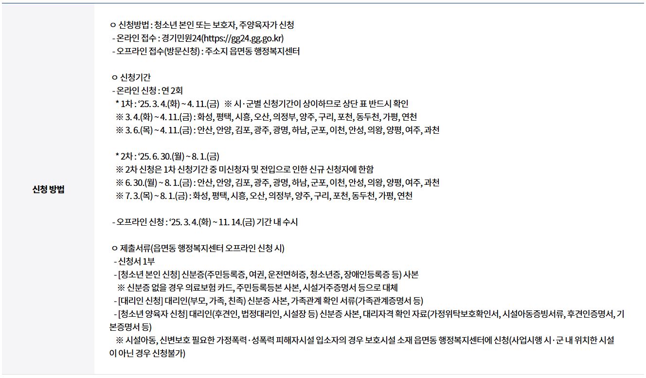 - 매년 신청 필요: 예전에 신청했던 분들도 매년 새로 신청해야 합니다.