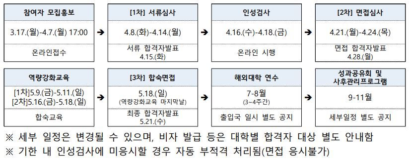 - Q: 프로그램 참여 후 어떤 혜택이 있나요? A: 프로그램에 참여하면 해외 연수 기회와 함께 다양한 역량 강화 프로그램에 참여할 수 있습니다.