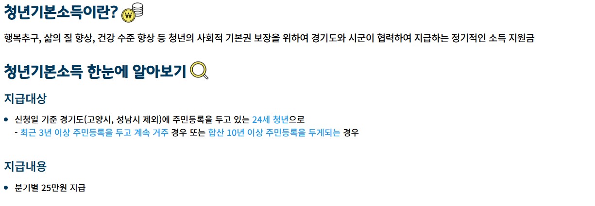 경기도 거주 24세 청년이라면 조건을 충족하면 누구나 받을 수 있는 제도!