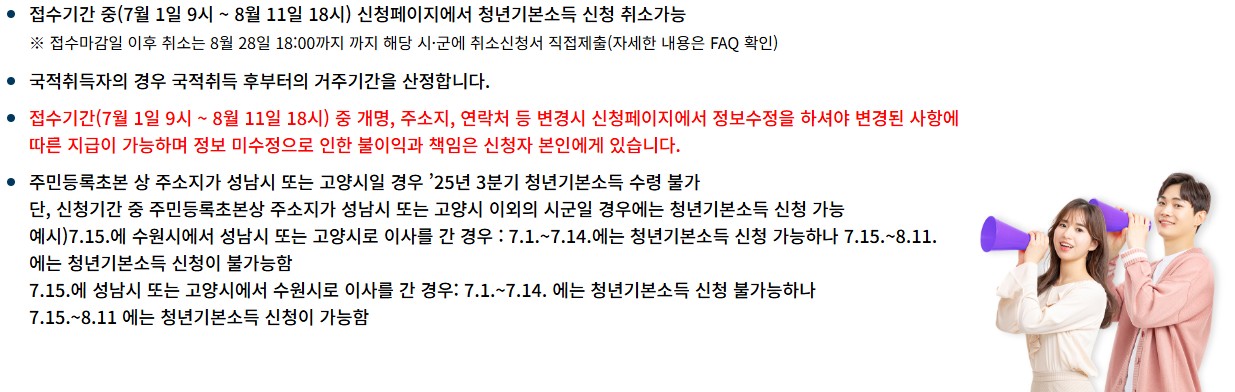 2025년 3분기 청년기본소득은 7월 1일부터 신청이 시작되었습니다.