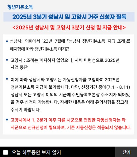 2025년 3분기 청년기본소득 신청이 시작됐습니다. 특히 고양시·성남시 청년은 신청 가능 여부가 달라졌습니다.