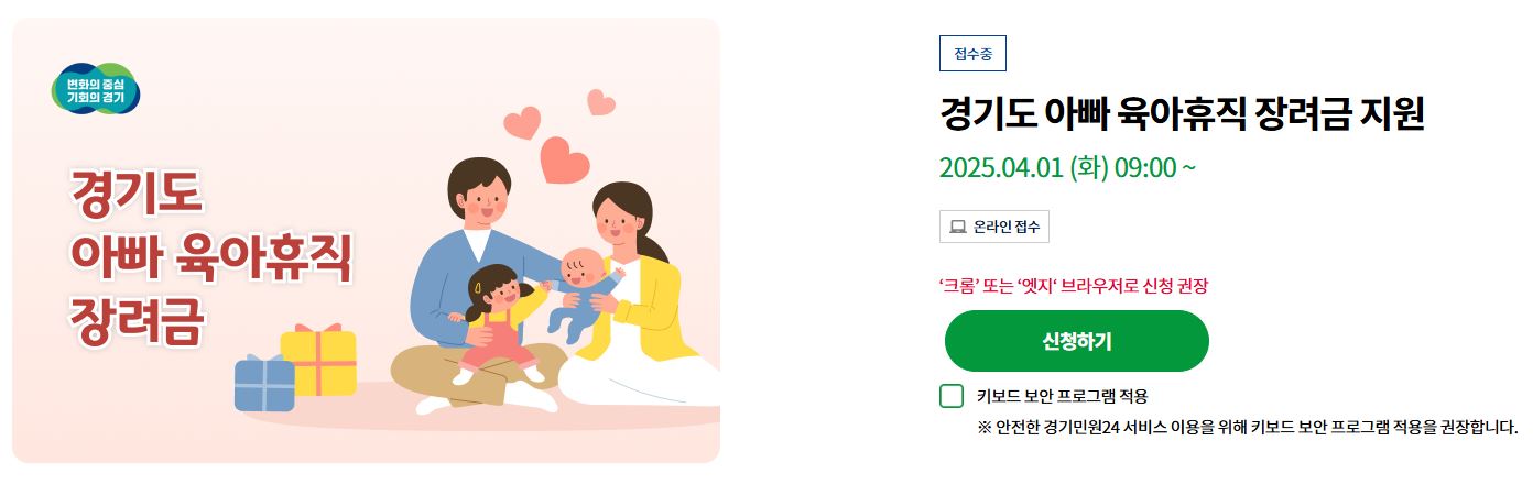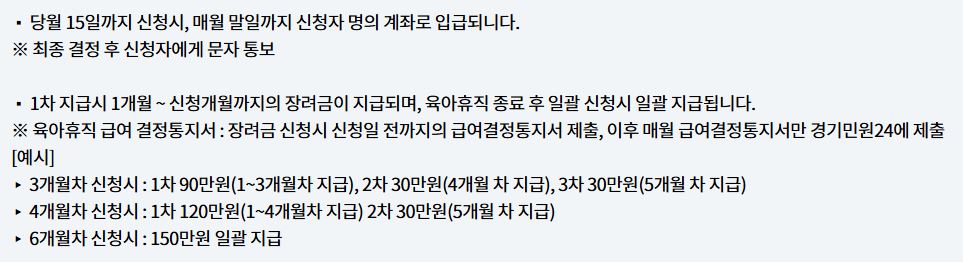 경기도에서는 아빠들의 육아 참여를 독려하고 경제적 부담을 덜어주기 위해 '아빠 육아휴직 장려금 지원' 제도를 시행하고 있습니다. 이 제도를 통해 육아휴직을 사용하는 아빠들은 월 30만 원씩 최대 5개월간 총 150만 원의 지원금을 받을 수 있습니다. 이는 가정의 경제적 안정을 도모하고, 남성의 육아 참여를 촉진하여 가족 친화적인 사회 분위기를 조성하는 데 큰 도움이 될 것입니다.