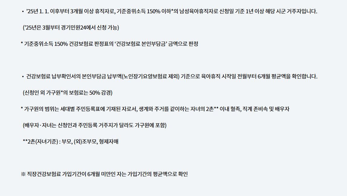 | 육아휴직 요건 | 3개월 이상 육아휴직 사용 |