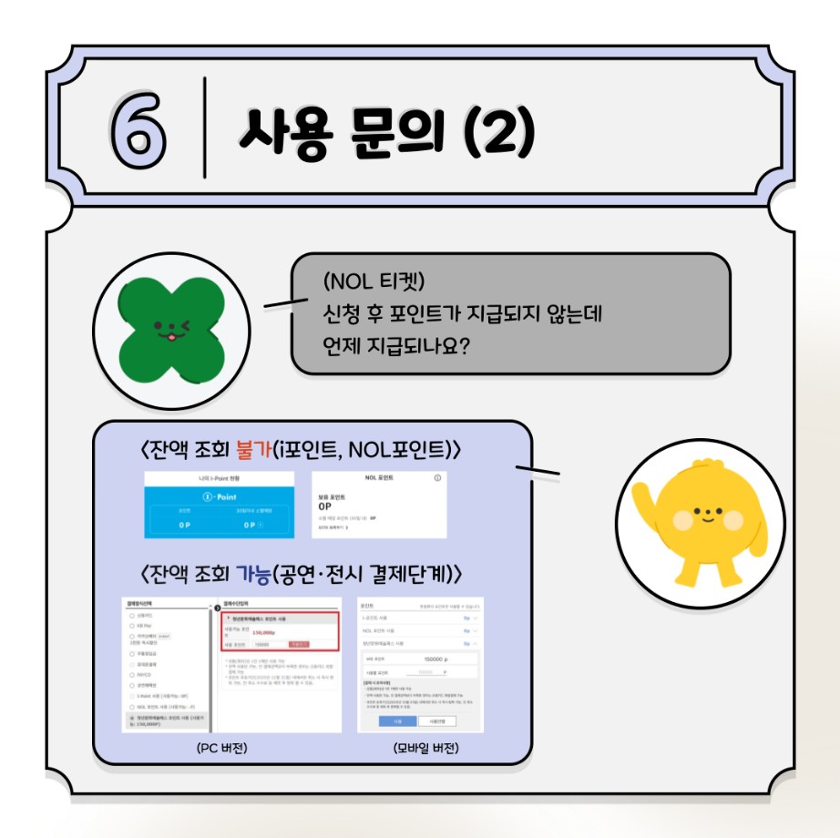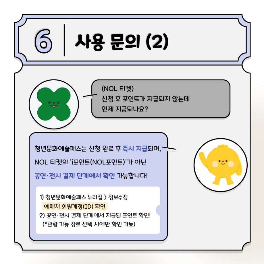 발급 후 선택한 예매처(YES24 또는 NOL) 포인트로 지급되어 해당 플랫폼에서 예매·결제 시 자동 차감됩니다.