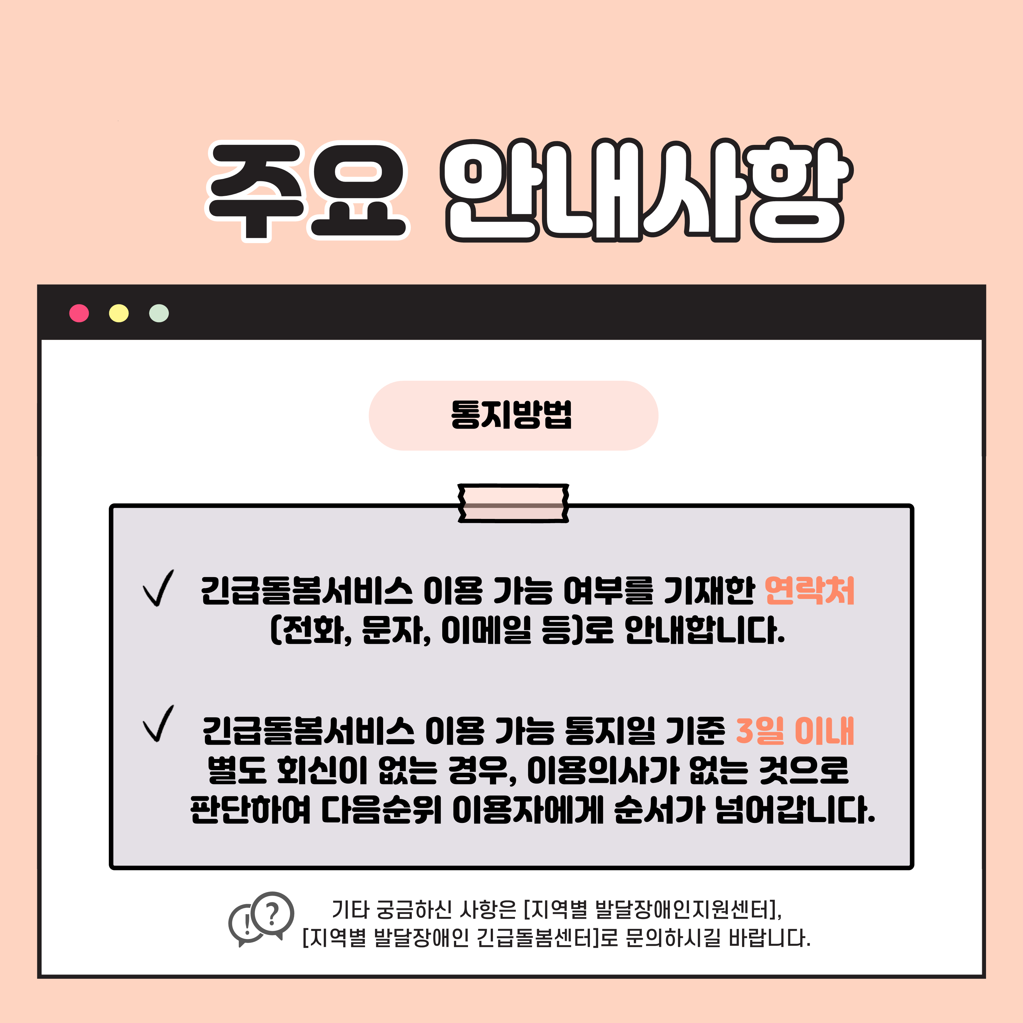 A1. 네, 긴급돌봄 서비스는 '긴급성'을 요하는 상황에서 신속한 지원이 가능하도록 설계되어 있습니다. 일반적으로는 서비스 필요 최소 하루 전까지 신청해야 하나, 당일 신청도 상황에 따라 가능하며, 이 경우 직접 주민센터를 방문하거나 담당 기관에 전화 문의를 통해 빠르게 접수하는 것이 좋습니다. 단, 긴급성 입증을 위한 서류 제출이 요구될 수 있습니다.